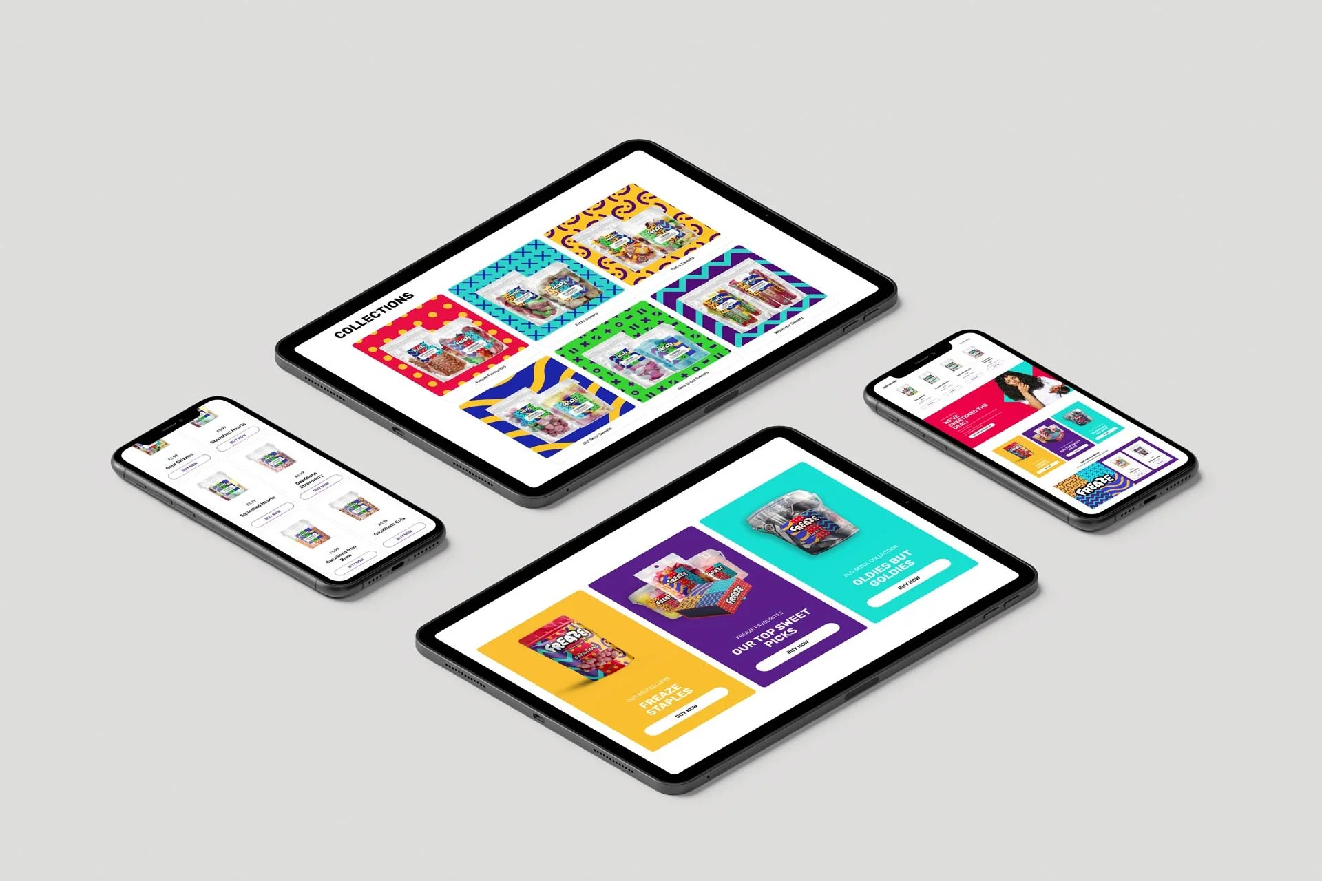 The Freaze logo perfectly embodies the brand visually; big, bold and fun, whilst communicating the unique process of freeze-drying sweets. Taking our brand font, Rubik, we’ve expanded and transformed each letter to replicate our product. This visual and design choice perfectly aligns with our brand ethos: taking the ordinary and making it extraordinary.